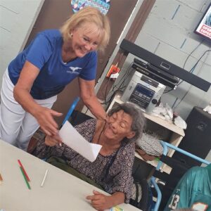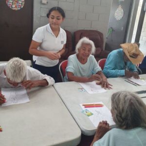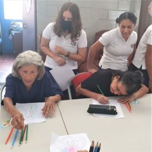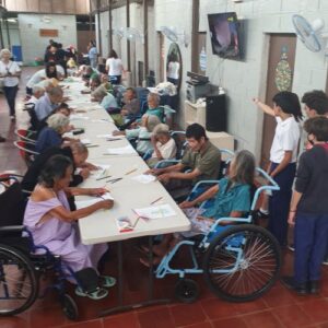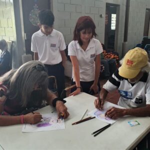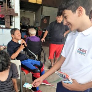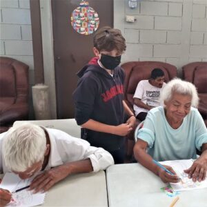 What a joy to revisit the Zaragosa Home on April 11 with Suzy Gonzalez, Nancy Rivard and Samantha Bukele and 11 students from the Maya School! Because of a generous donor from our previous visit, we were able to provide 55 chicken dinners from Pollo Campero – which delighted the residents! Additionally we had everyone participate in a coloring project from withe the inspiration from Angels of Hope! Everyone had a wonderful time….and what meant most to them was gruly our PRESENCE! See below pictures which tell the story: