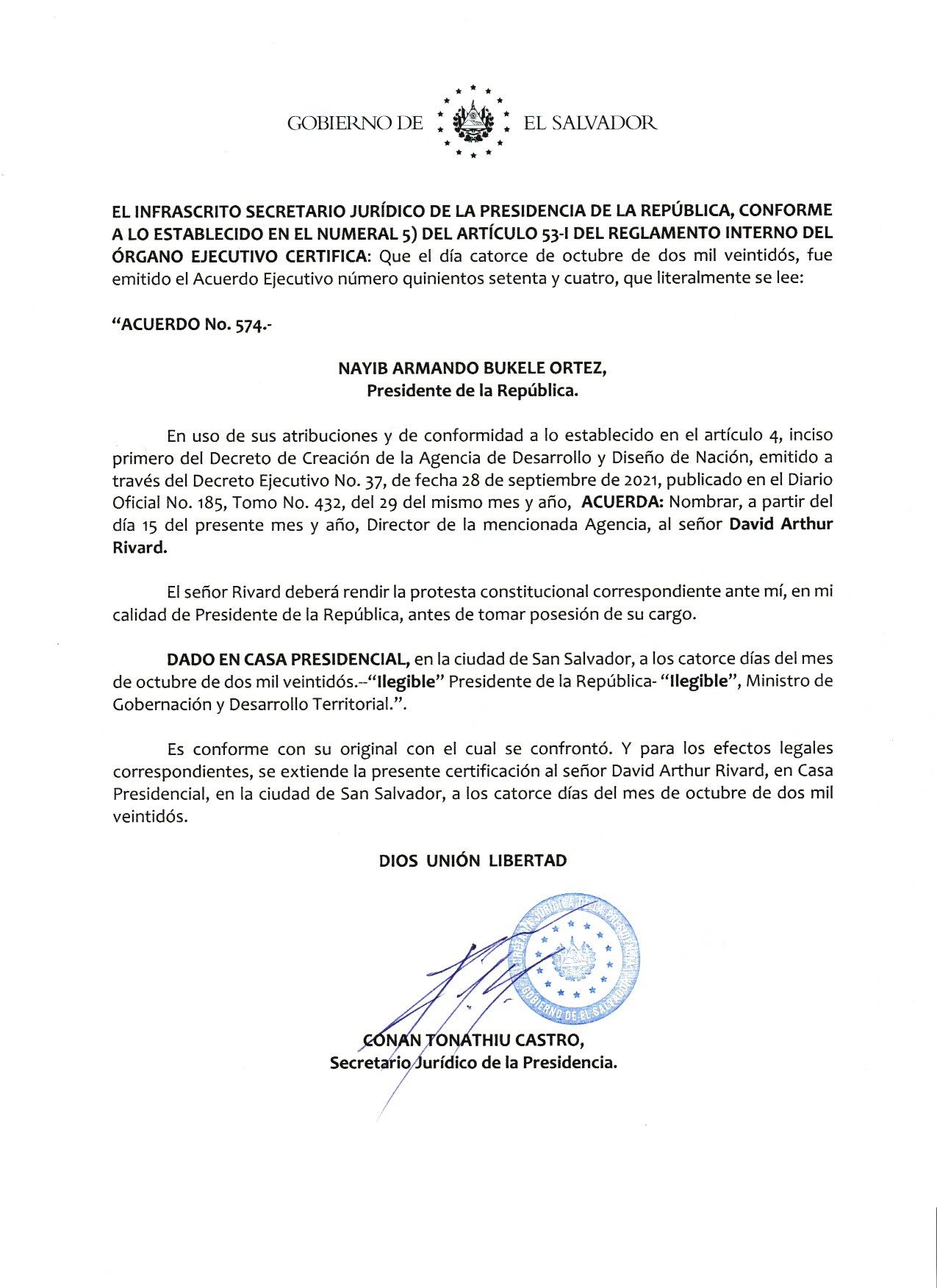 The team has already brought in substantial resources to El Salvador from the World Bank and International Monetary Fund. This is the Decree in English: