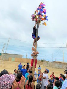 Expats and locals shared information on basic health, trafficking and latrine-building while the children played games, sports and enjoyed coloring and health-related art projects! At lunchtime, we served chicken and rice for the adults and hotdogs and juice for the children. Then the Community’s first Anniversary celebration began. You won’t want to miss the Palo Ensevado! An 8 ft pole is greased and prizes of water, toilet paper, bags of rice, etc. See this video. and this ecuador slide show